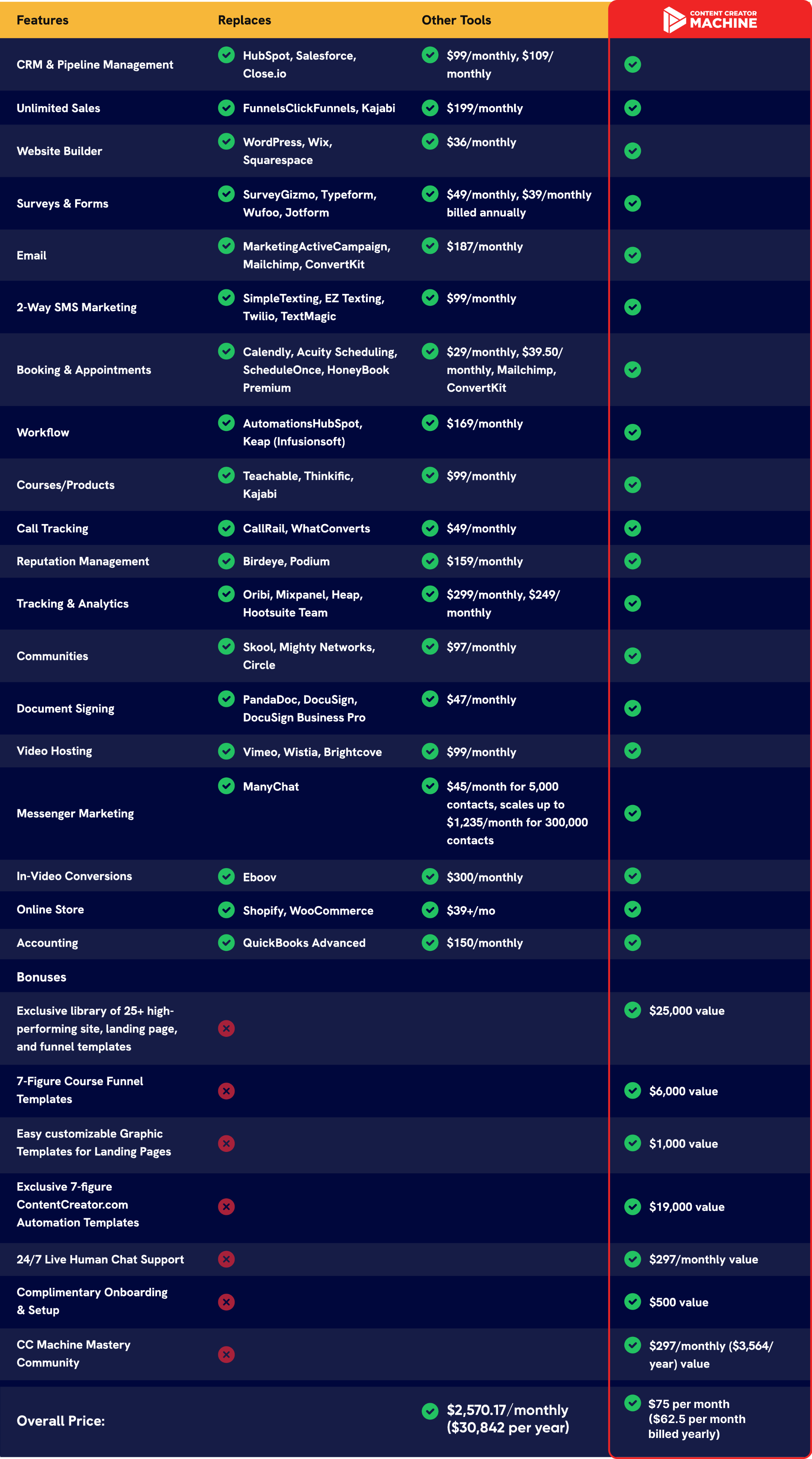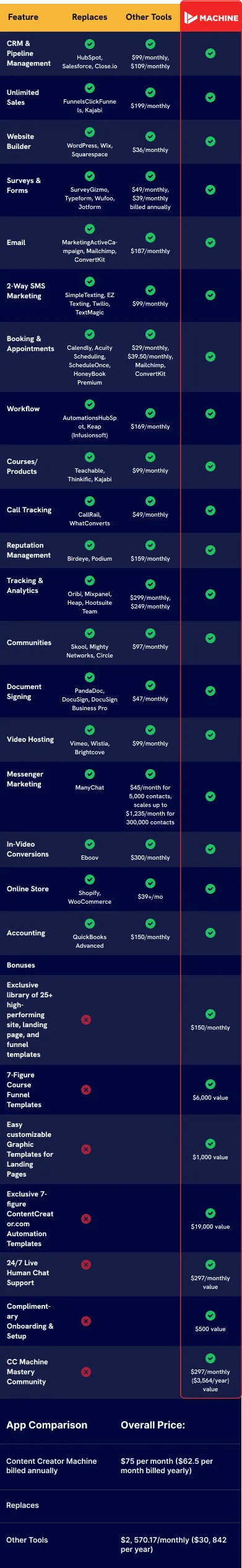 The Content Creator MACHINE is for anyone who wants to add more capabilities to their business while saving thousands in software fees and countless hours using ONE tool for their entire business at just $75/month or $750/year!